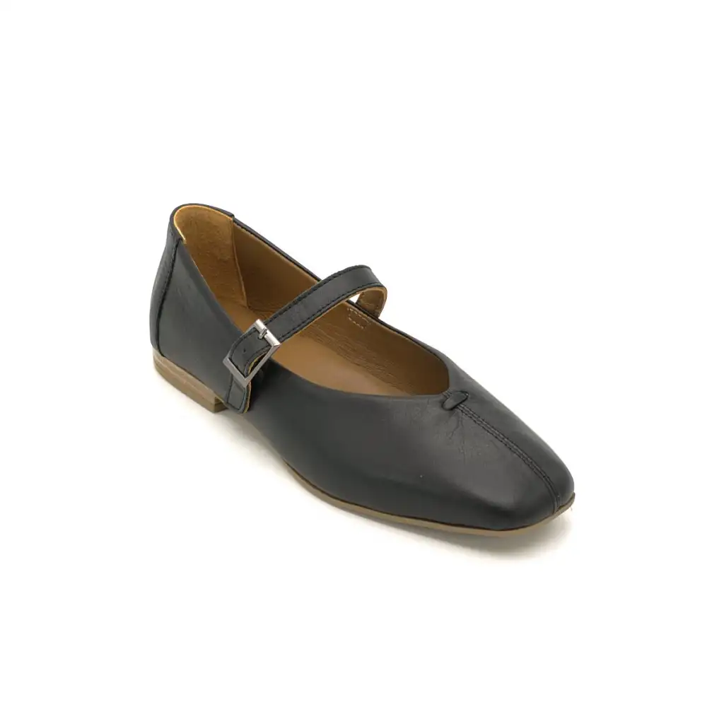 BLL 104 Hakiki Deri Tokalı Bayan Babet Siyah