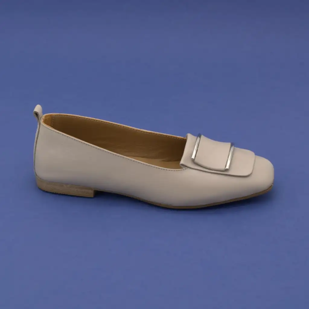 BLL 255 Hakiki Deri Tokalı Bayan Babet Bej